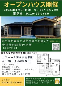 ひたちなか市津田・中古戸建てのオープンハウスを開催します。 リフォームのプロが不具合をよく検分し、必要なリフォームを行っておりますので中古でも安心♪ 中古住宅お探しの方も、ご自宅のリフォームを検討中の方も、お気軽にご来場 […]