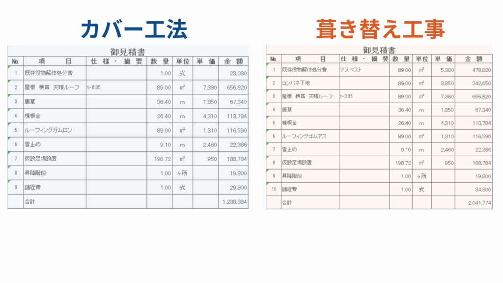 同じ屋根でも、工事方法で金額は大きく変わる